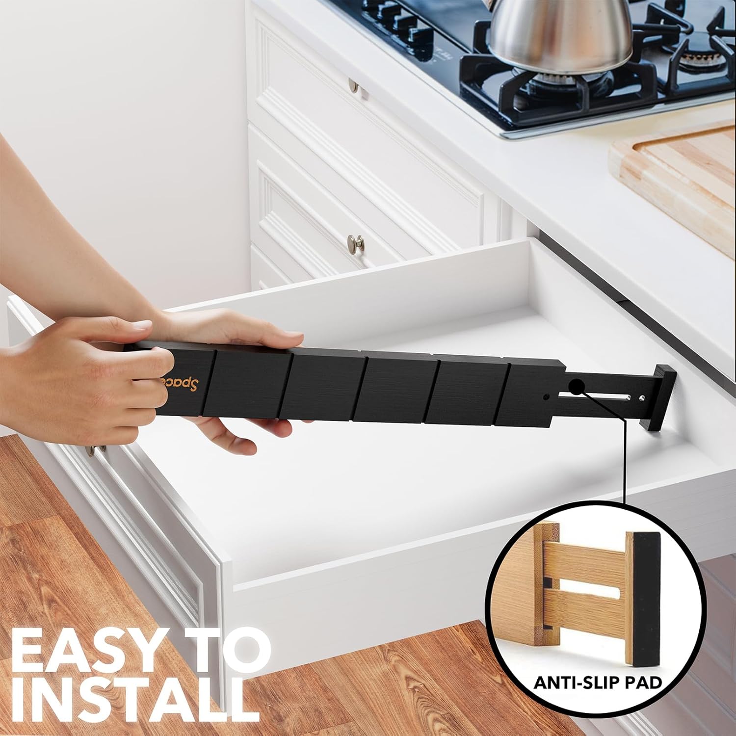 • Drawer Dividers That Stay in Place: Strong spring-loaded design makes them sturdy dividers, with non-slip rubber pads in the end, keeping it stay put all the time and protect your drawers from scratches