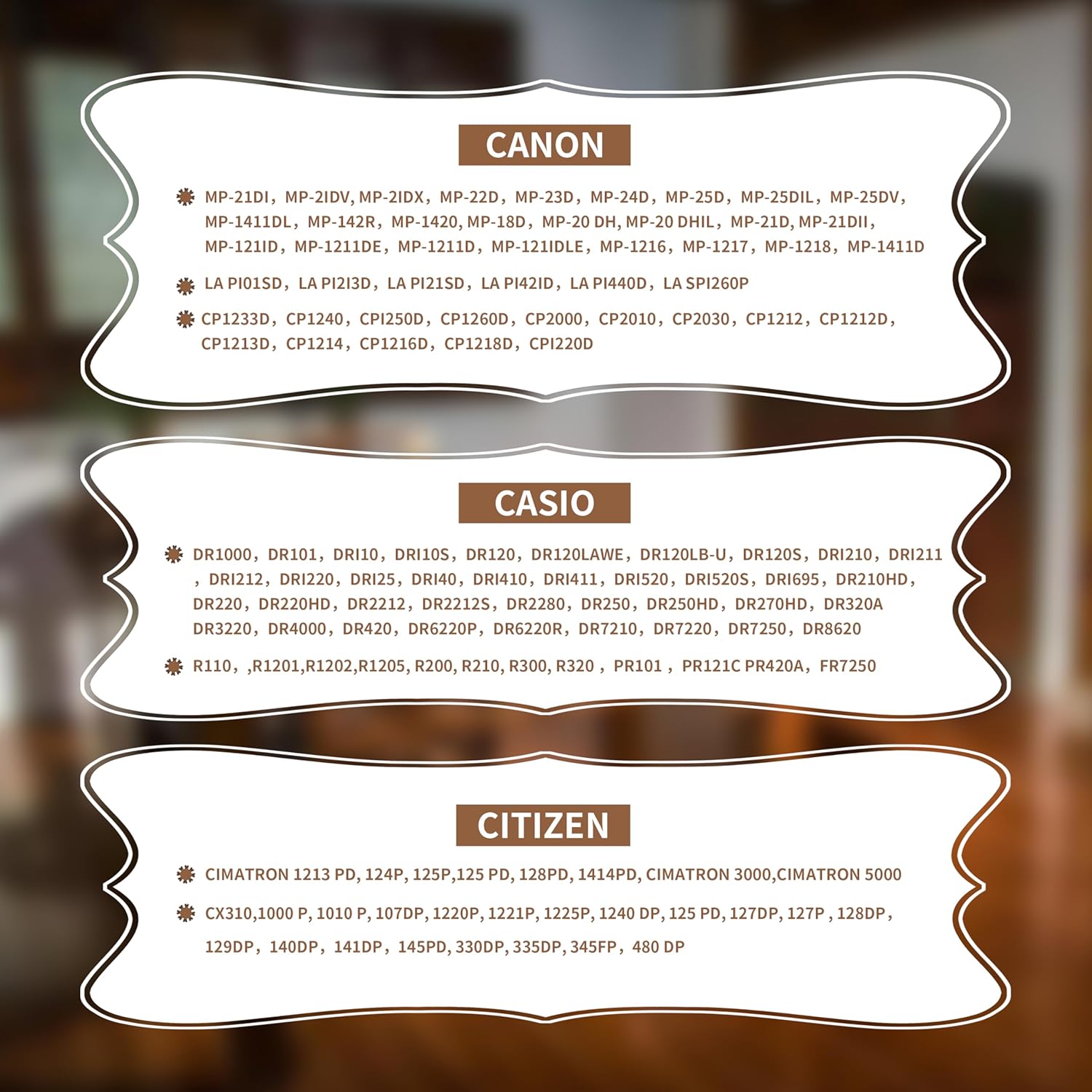 • COMPATIBILITY: This Printer Ribbon Is Compatible with Most Printers Such As Sharp EL-1197PIII EL-2196BL, Canon MP21DX MP1DX MP25DV MP27D, Casio Fr-2650tm DR-120R Dr-210r, BOEDCN-GR24BR, Porelon # 11216 # 11210 Nukote BR80C, Also Fits Citizen and Victor.