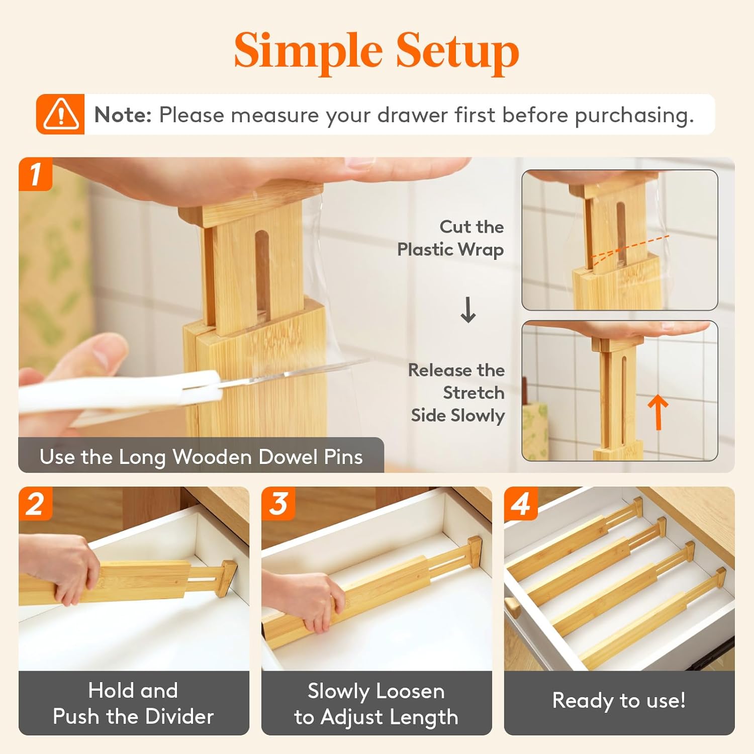 • Stable Structure: The kitchen drawer organizer features a tooth-lock design for robust support and adjustability, with strong springs offering high elasticity and reinforcement, and anti-slip foam ensuring optimal grip and friction, making them a reliable choice for any drawer