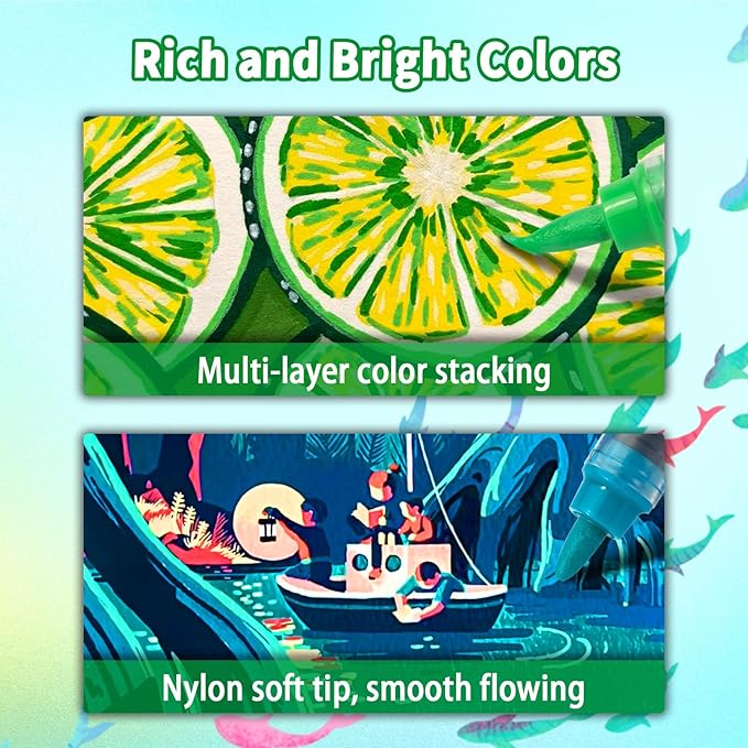 • 【Upgraded Automatic Ink-Control System】The fabric markers drawing supplies adopted the latest unique automatic ink-control system, ensuring flexible and even ink flowing. Enjoy the control of acrylic paint marker with pre-activated nylon soft nib for a paint-like finish