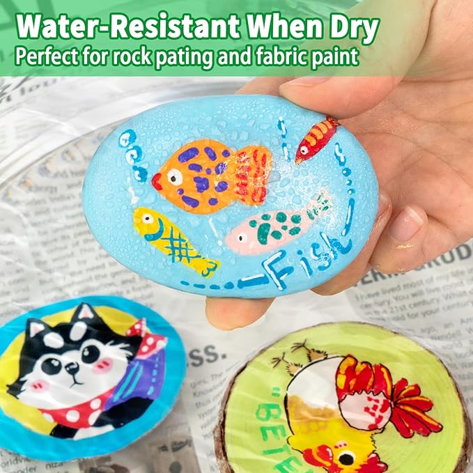 • 【Work Well on Diverse Surface】The waterproof acrylic paint markers can widely used on a variety of surfaces such as rock painting, fabric, wood, stone, glass, ceramics, metal, plastic, canvas, eggs, Halloween pumpkins, greeting cards, and more. Keep your artwork colors alive for a long time