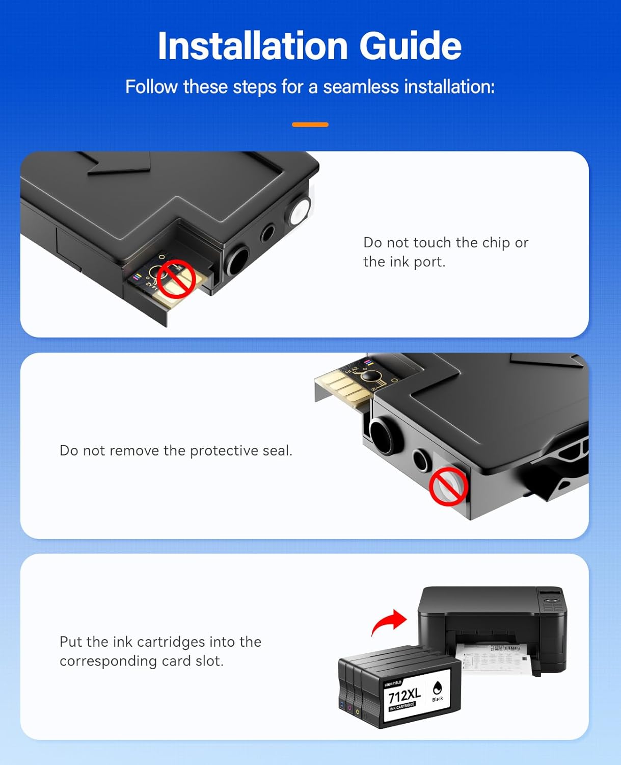 • 【High Quality】712XL Ink Cartridges with chip can be instantly identifed by your printers and work perfectly, making daily documents, reports, letters, graphics and photos very clear and bright.