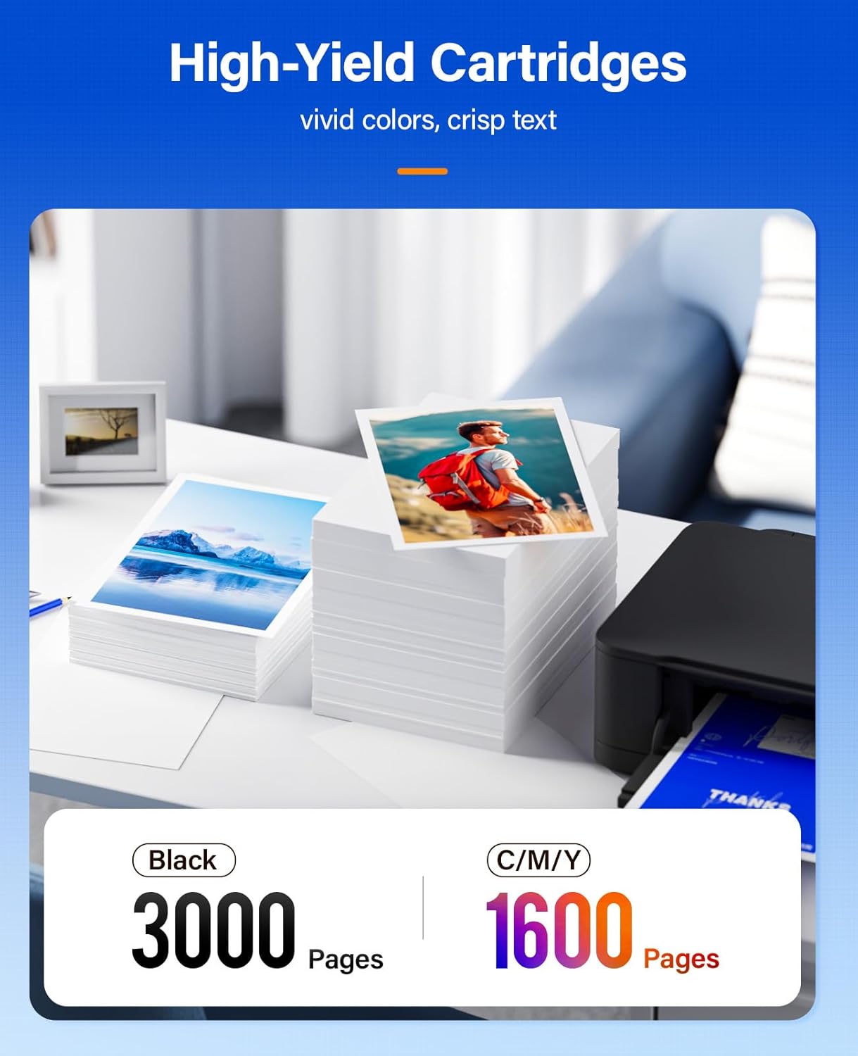 • 【Page Yield】Up to Black is 3,000 pages per black Ink cartridge and Color is 1,600 Pages per color Ink cartridge (Letter/A4, at 5% Coverage).