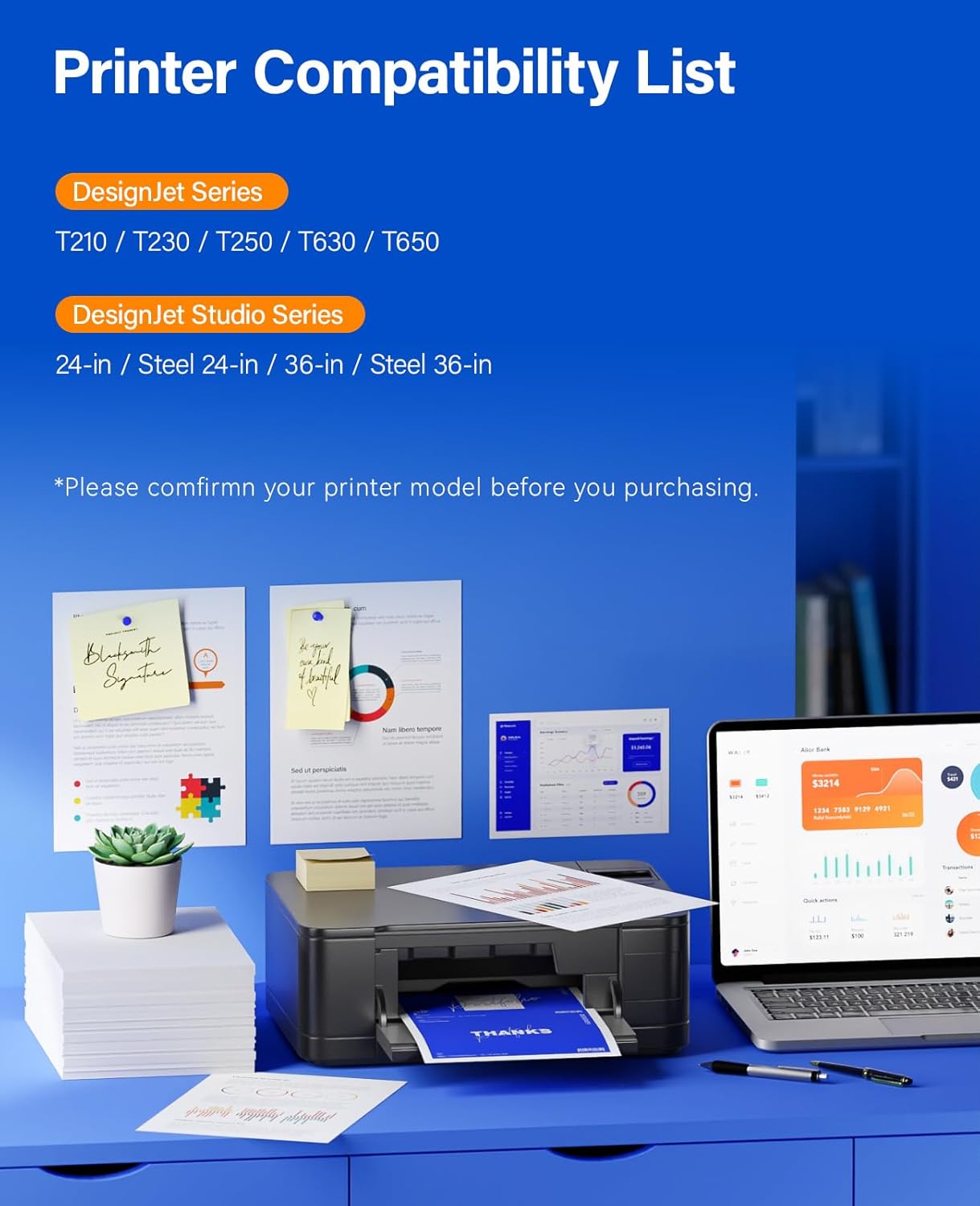 • 【Compatible Printer】Compatible for HP DesignJet: T210, T230, T250, T630, T650;HP DesignJet Studio: 24-in, Steel 24-in, 36-in, Steel 36-in Printer.