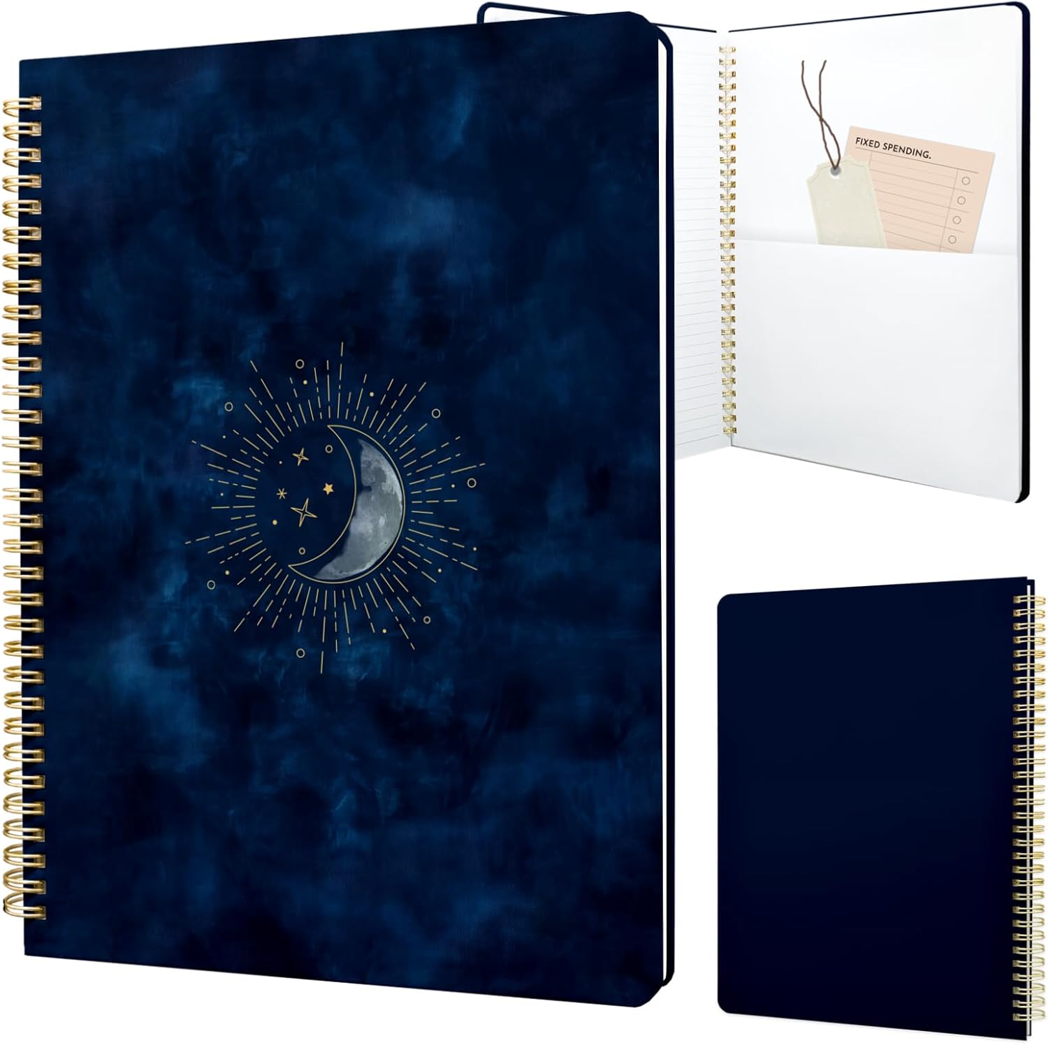 Cute Spiral Notebook journal A4 Aesthetic Pretty Design for Women Girls Kawaii with Pocket, 8.5 x 11 inch, Lined, Blue Moon