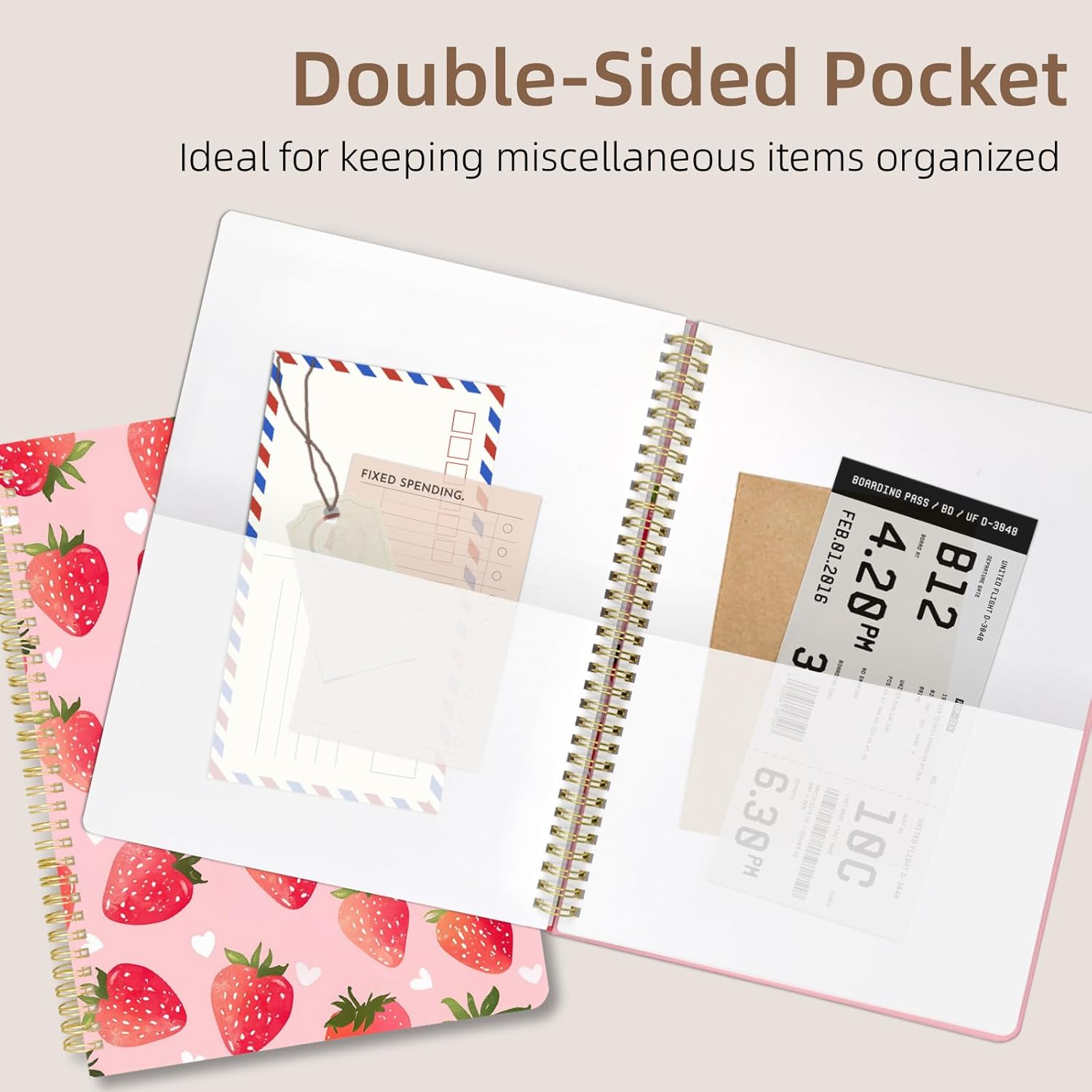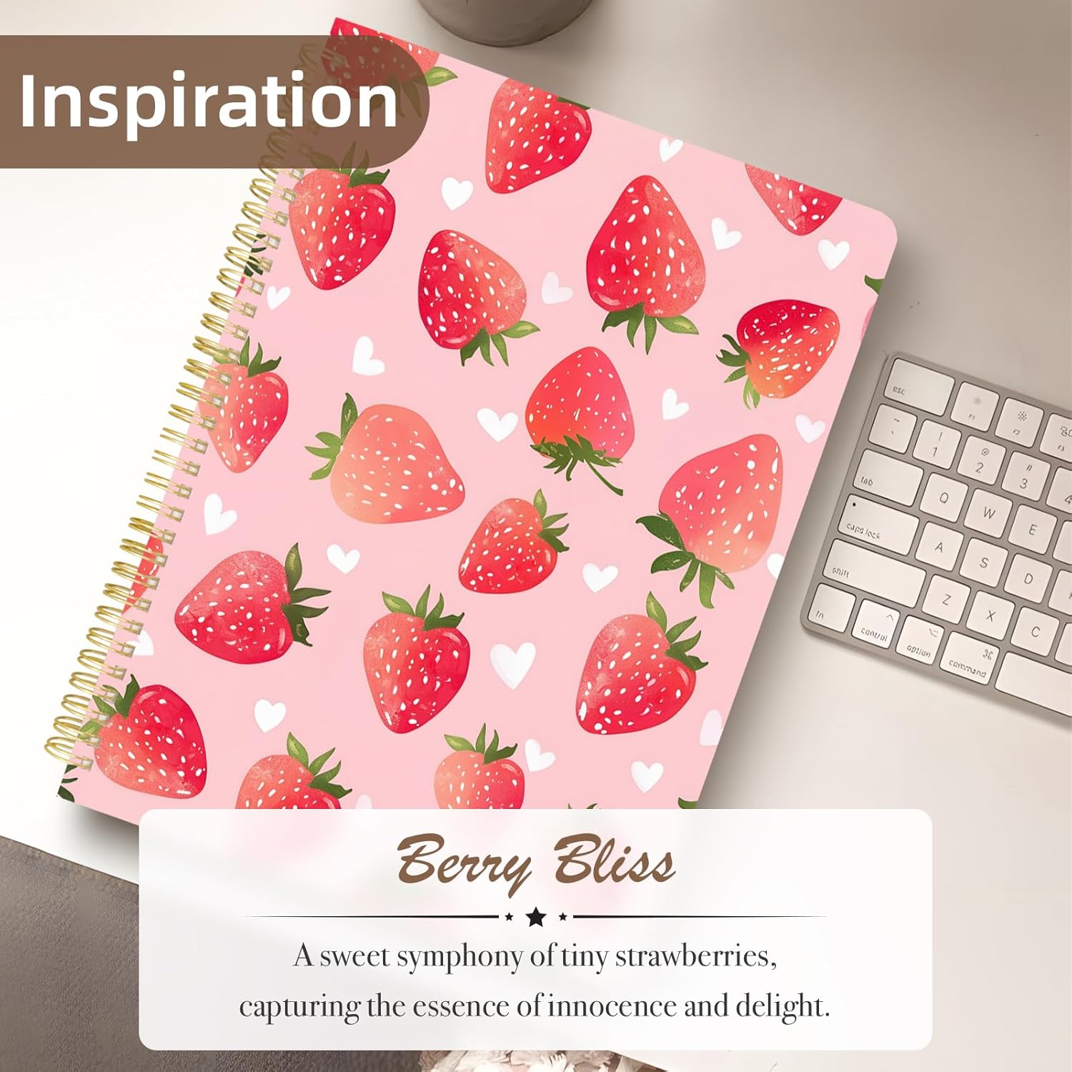 Cute Spiral Notebook journal A4 Aesthetic Pretty Design for Women Girls Kawaii with Pocket, 8.5 x 11 inch, Graph, Strawberry