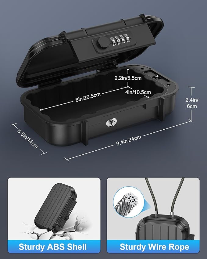 • 【Study Construction】Featuring a silicone seal, our combination lock box keeps water out (𝐧𝐨𝐭 𝐟𝐨𝐫 𝐮𝐧𝐝𝐞𝐫𝐰𝐚𝐭𝐞𝐫 𝐮𝐬𝐞). The robust ABS casing is impact-resistant, protecting your belongings from drops and collisions