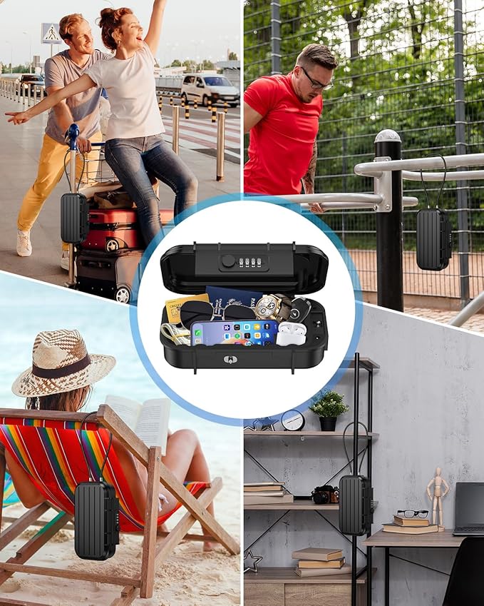 • 【Versatile Use for Various Settings】Designed for portability and security, this versatile lock box can be used in a wide range of settings, including beach chairs, sports equipment, bicycles, and treadmills. Ideal for outdoor camping, beach trips, and everyday use, it makes a thoughtful gift for family and friends who value both convenience and safety