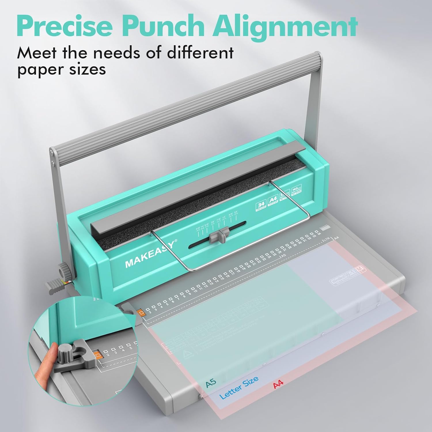 MAKEASY Binding Machine - Wire Binding Machine, 34 Hole, 12 Sheets Punch Capacity, Metal Book Maker Machine with 1 Box Wire Spines & Ring Opener