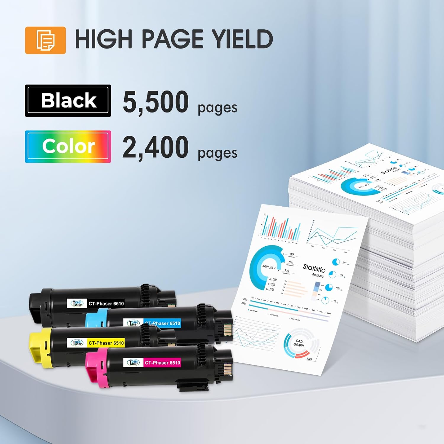 • Page Yield: 5,500 pages per black 6510 toner cartridge & 2,400 pages per color 6510 toner cartridges (Letter/A4, at 5% coverage)