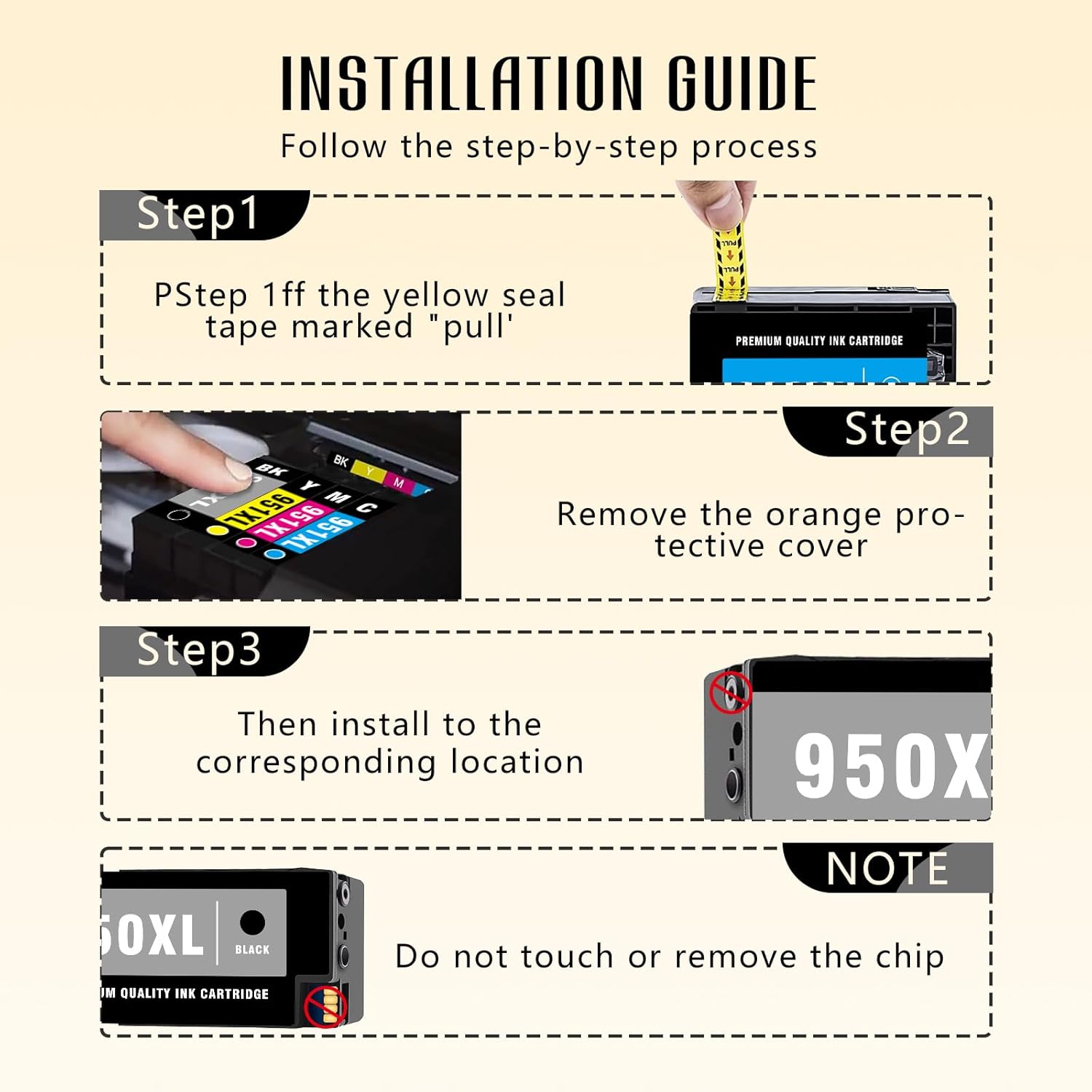 • For hp 950 xl 951 xl ink cartridges combo pack reliable ink:J2INK for HP Ink 950XL 951XL Combo Pack for 950xl/951 ink cartridges black/color combo pack easy to install, bright colors, strong compatibility, high quality, prints with excellent color and crisp text