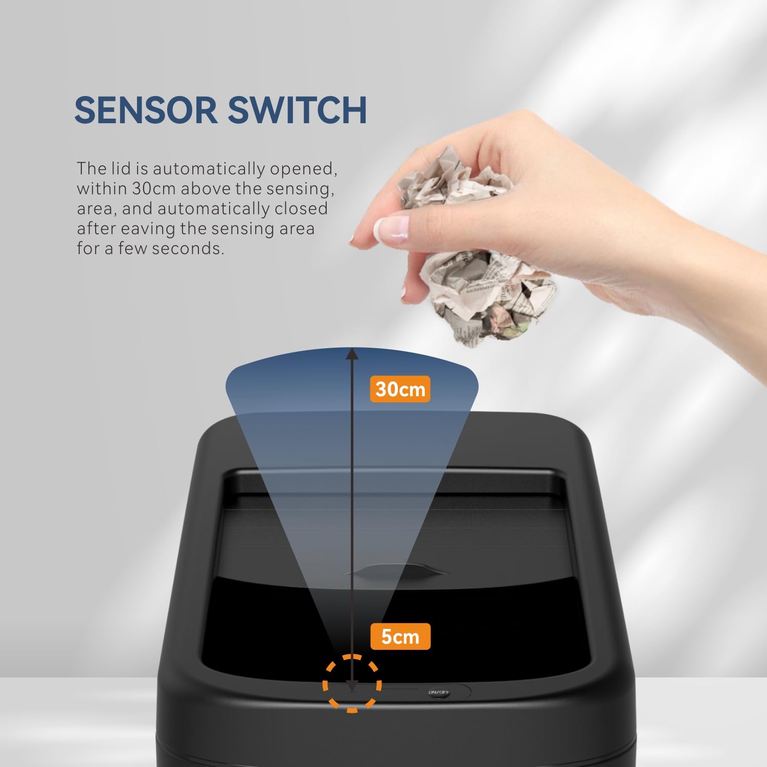 • 【High-Tech Induction Device】Our touch free trash can used high technology induction device, whether it is sensing the proximity of a human hand or an object, it can respond quickly to open the lid of the trash can, and automatically close the lid within 5 seconds after the trash is thrown in.