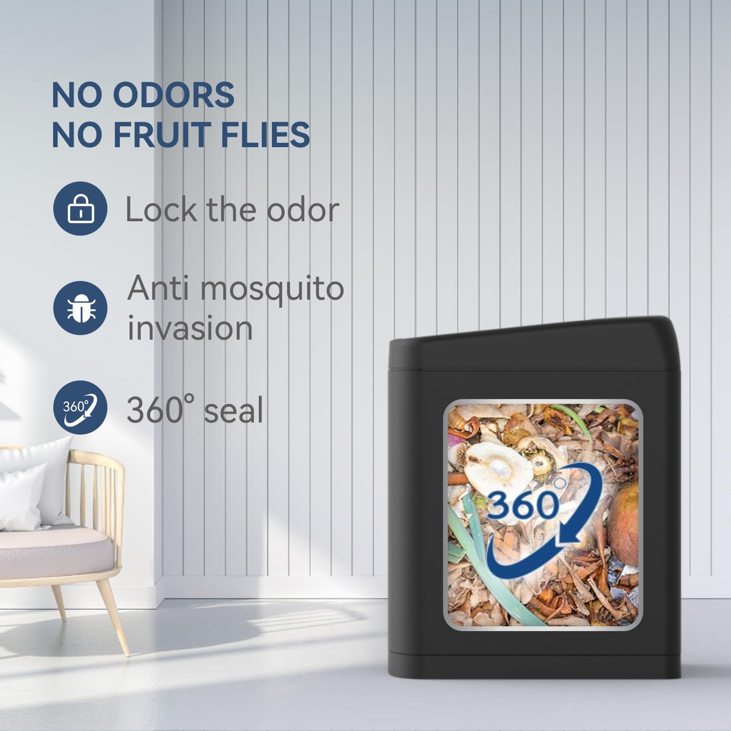 • 【Sleek Roll-Top Lid Design】 :The roll-top lid design not only keeps the trash hidden but also prevents unpleasant odors from escaping. The smooth opening and closing mechanism effortlessly seals in the odor, keeping your kitchen smelling fresh.