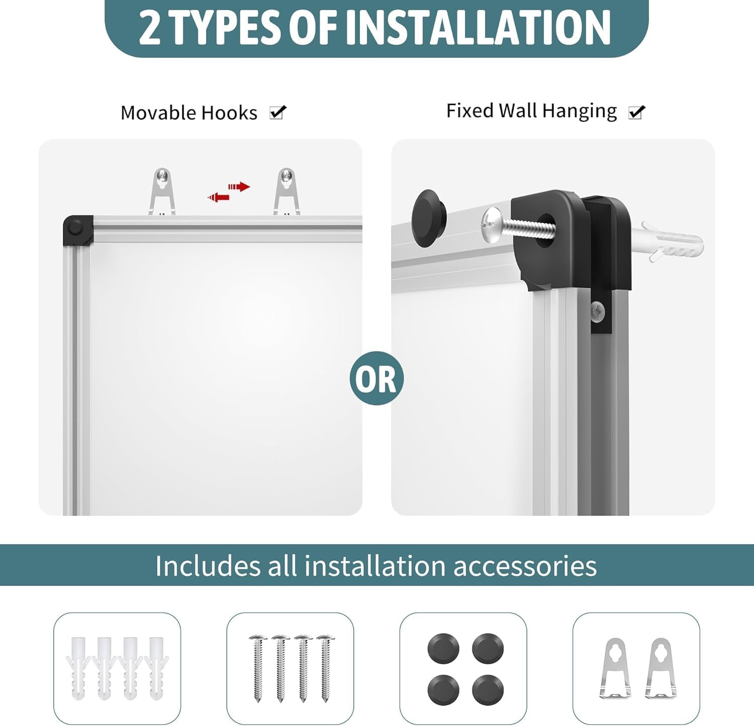 • Easy to Install: Mounted vertically or horizontally just as you like, the detachable free marker tray can be placed on any of the board's 4 sides