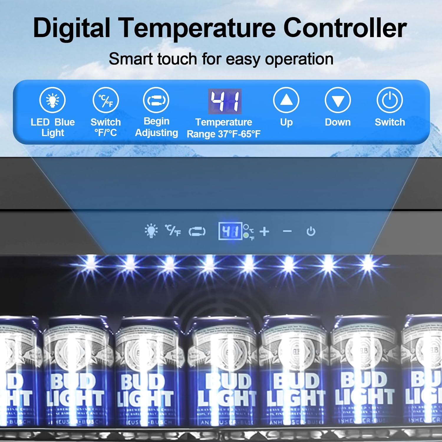 • 24-INCH & 5.2 CU.FT. LARGE CAPACITY: This beverage refrigerator offers a 40% increase in storage capacity, providing 5.2 cubic feet. of space that can hold up to 200 standard-size bottles. It features an integrated activated carbon deodorization system to effectively reduce odors inside the drink fridge, preventing any impact on the taste of your beverages. Ideal for home bars, kitchens, living rooms, offices, or entertainment spaces, it’s both easy to use and elegantly modern.