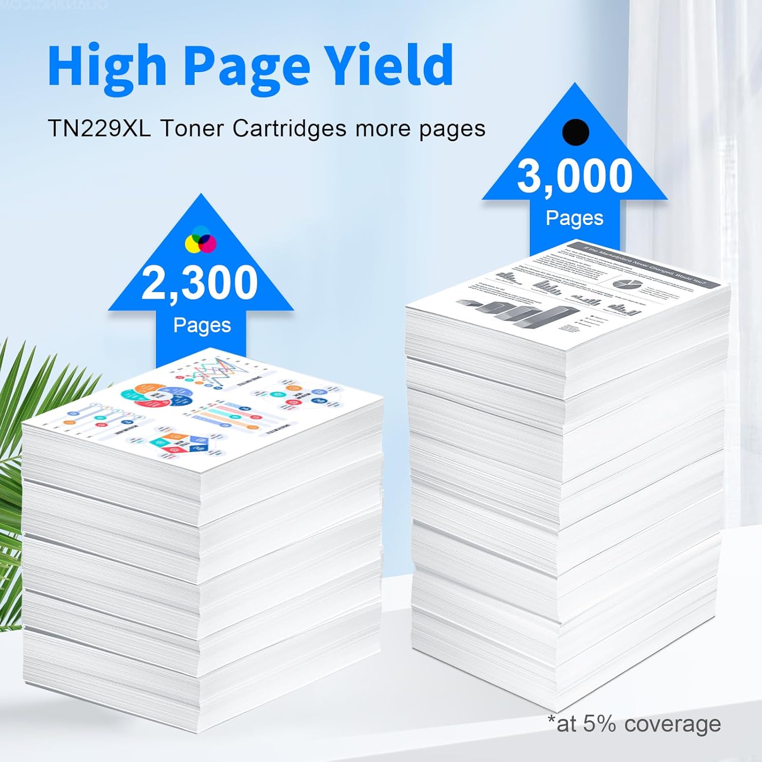 • 【Estimated High Page Yield】:Up to 3,000 pages per TN229XLBK black toner, up to 2,300 pages per TN229XLC TN229XLM TN229XLY toner cartridges (based on 5% coverage)