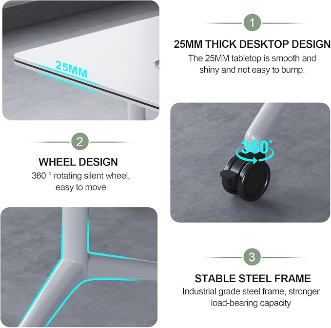 • 【Multifunctional Design】: This conference table is not only a table, but also a multifunctional piece of furniture. Training tables with wheels can also be used as desks, desks or dining tables. The spliced ​​design allows you to easily connect multiple desks, which are simple and convenient to assemble, making it easy to create a larger workspace.