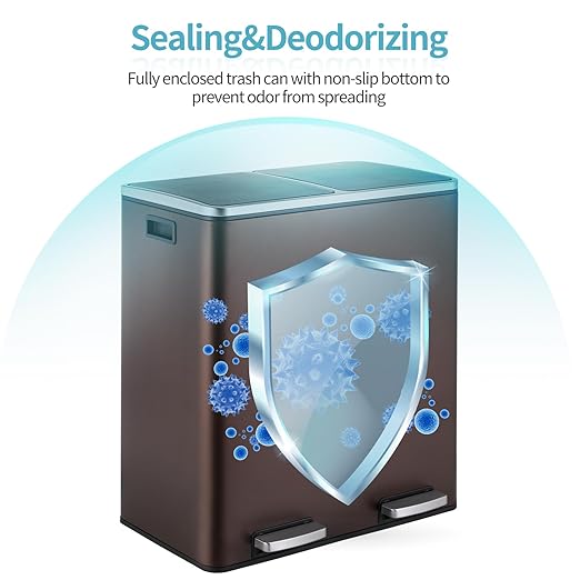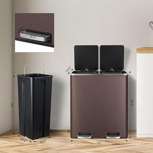 • 2×8-Gallon Compartments: 16-gallon step trash can has two compartments, combining garbage and recycling. Completely separated dual garbage and recycling can also avoid the smell of garbage. 2 removable inner buckets increase convenience