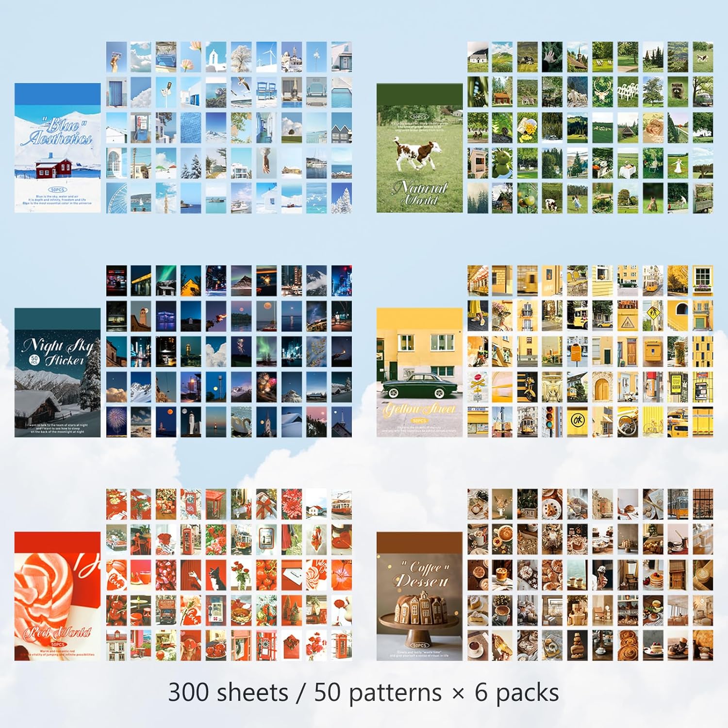 • Package Include: Each package comes with total 6 packs, each pack 50 pieces, total 300 pieces vintage aesthetic washi stickers.These self-adhesive scrapbook stickers measure 40x60mm/1.57x2.36 inches. They’re perfect size for adding small details to art journals.