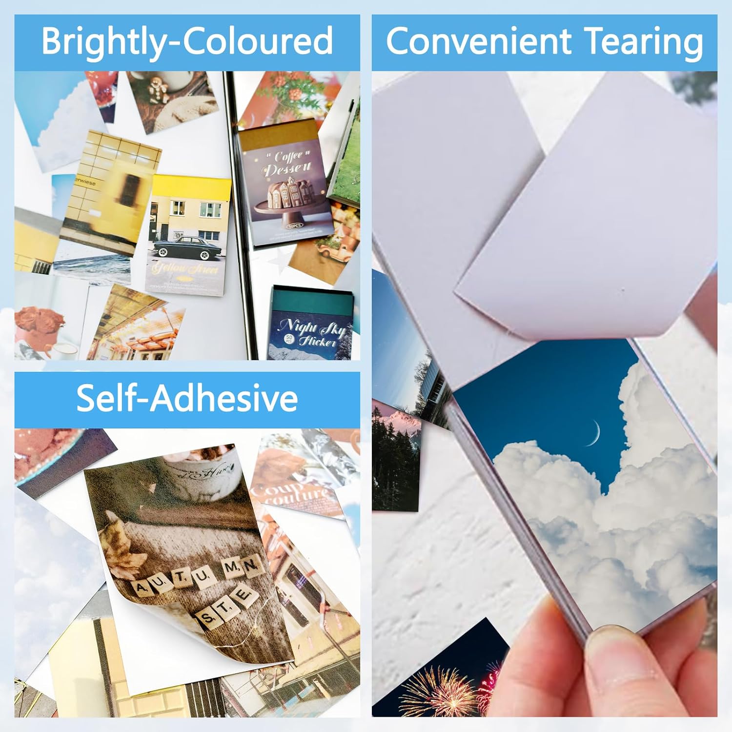 • Versatile Decorations: Scrapbook stickers are not just limited to scrapbook pages, they can also be used to decorate cards, bullet journals, junk journals, notebooks, planners, albums, collages, gift wrap, and other crafting projects.