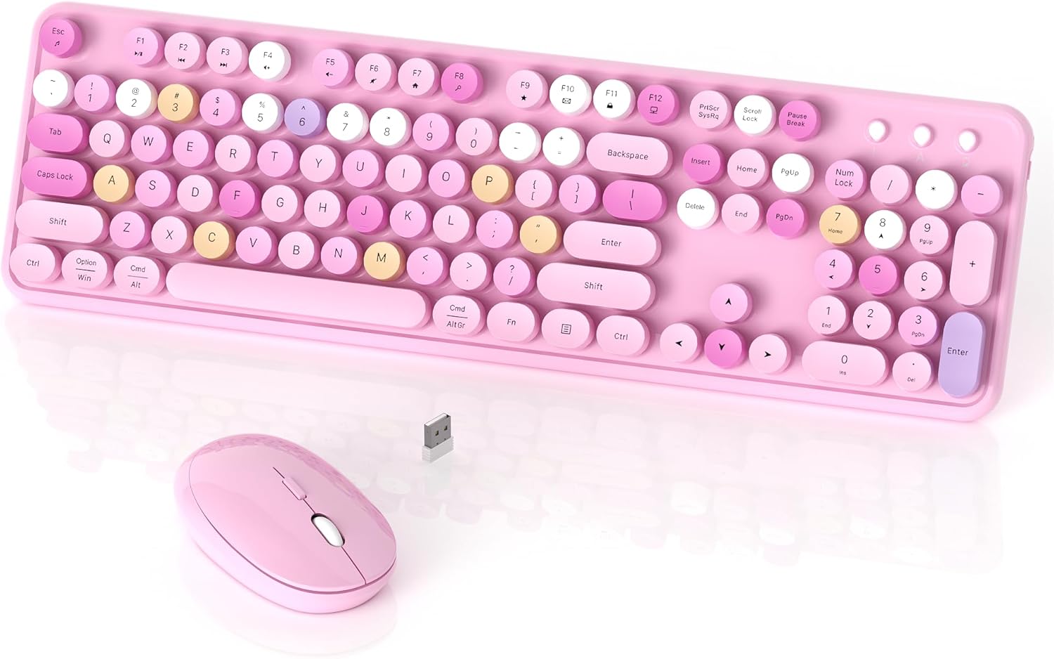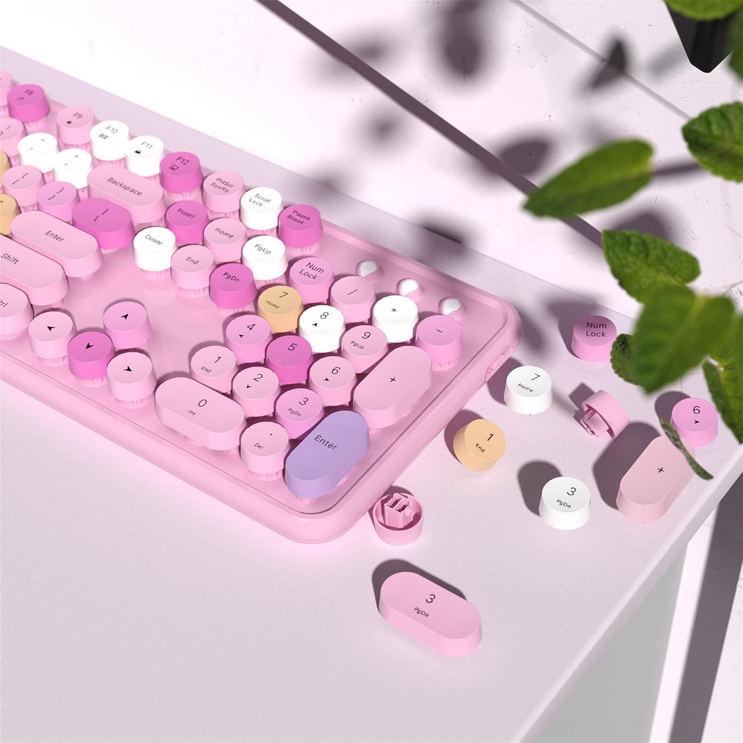 • COLORFUL WIRELESS KEYBOARD: Typewriter retro with round keycaps and clicking sounds make you enjoy typing. the latest color is unique and add vibrant to your desk
