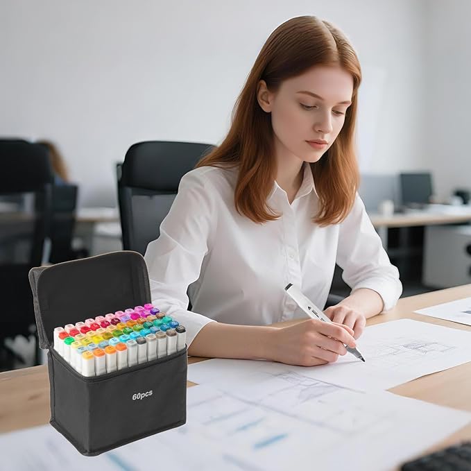 • Portability - You'll receive marker x60 + carrying bag x1, for easy transport and storage. To prevent ink leakage(Water + Glycerol), avoid leaving the tips on paper for too long or use an extra sheet behind