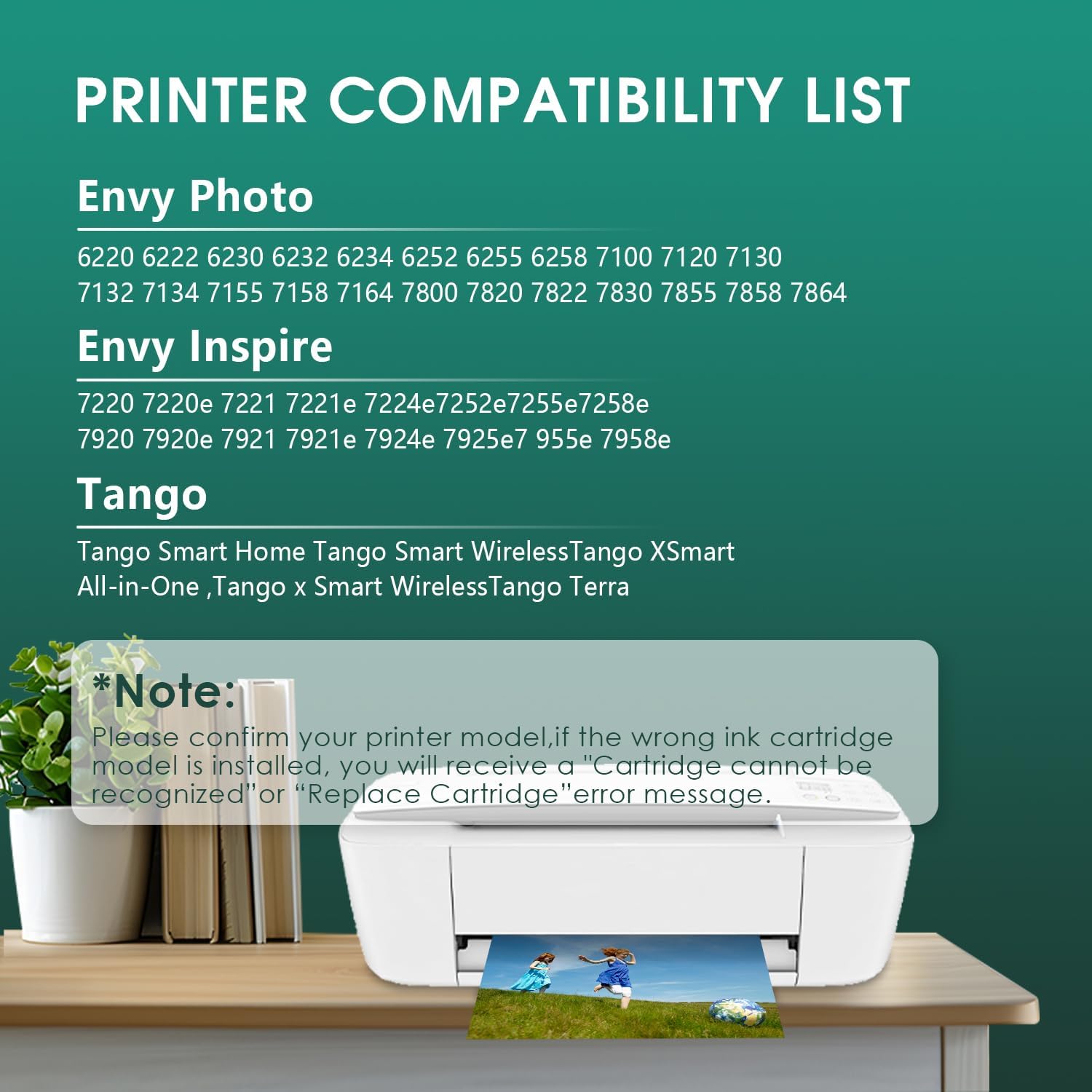 • Compatible with Envy Series : Photo 6220 6222 6230 6232 6234 6252 6255 6258 7120 7130 7134 7155 7158 7164 7822 7820 7830 7855 7832 7858 7864 Printer.
