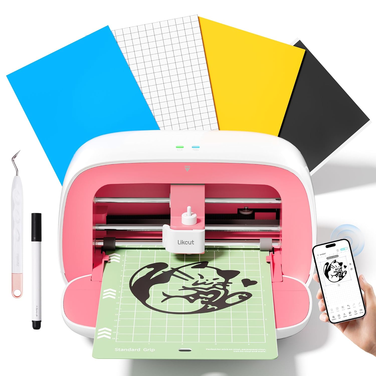 • Multi-functional die cutting machine to meet your creative needs: Likcut vinyl cutter supports two modes of cutting and painting, which can be used to cut materials (self-adhesive vinyl, heat transfer vinyl, ect), drawing cardstock or writing labels