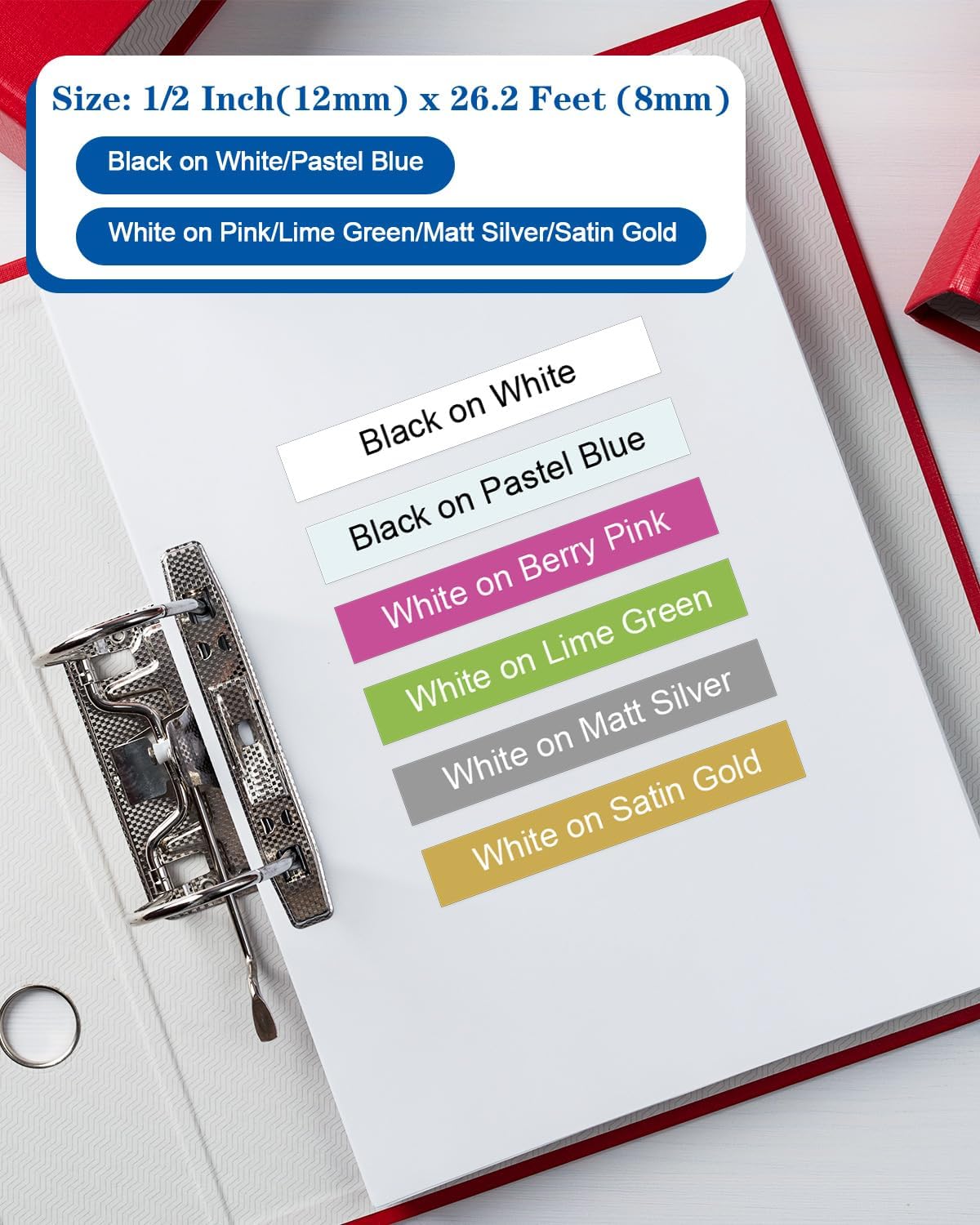 • Package Information: 6-Pack compatible for brother p touch label tape TZe TZ tape 12mm 0.47 laminated colored, Size: 12mm (1/2'') x 8m (26.2 feet) per label tape