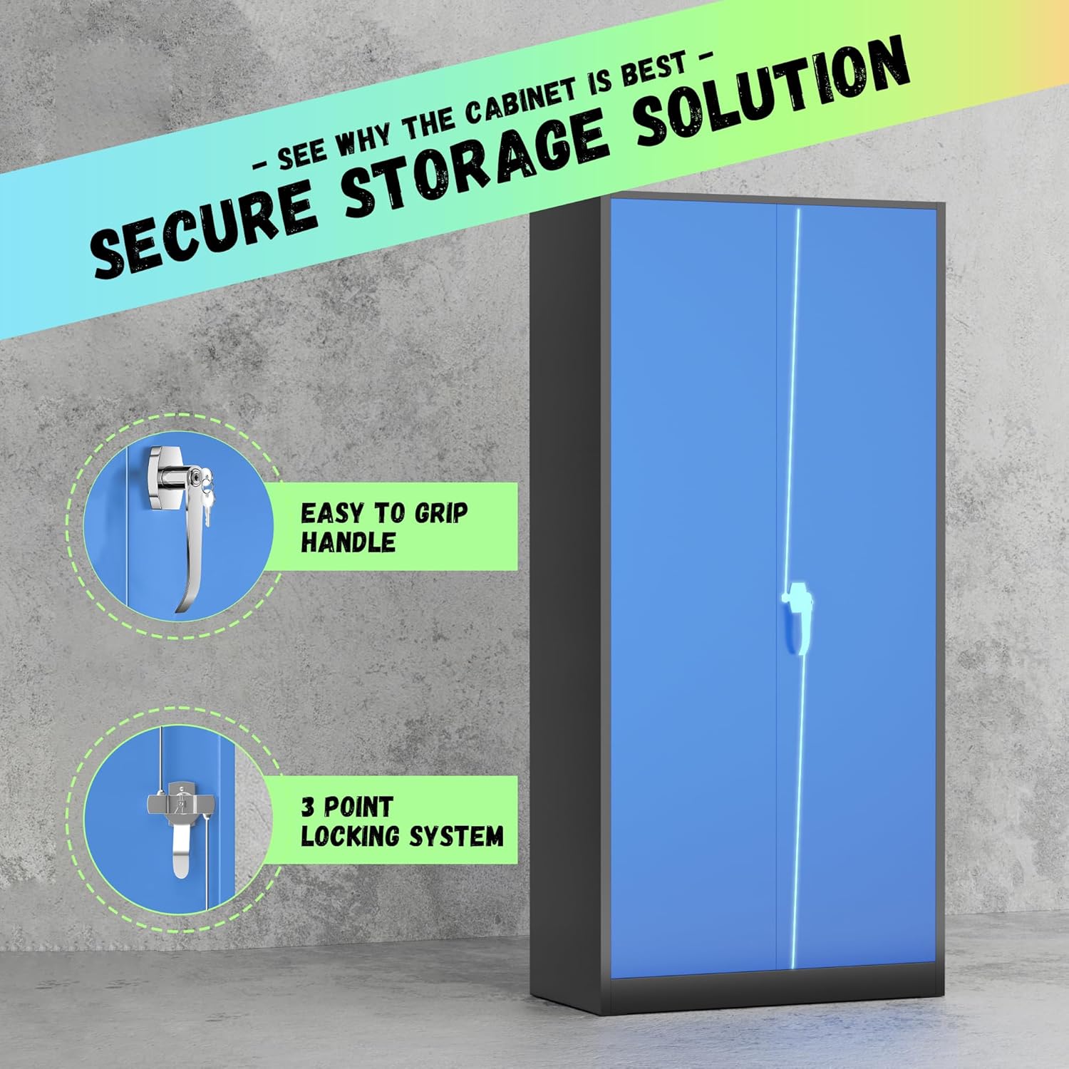 INTERGREAT Garage Storage Cabinets with Doors and Shelves,72" H Steel Locking Cabinets Storage with Lockable Door,Metal Storage Cabinet for Home Office,Warehouse,School,Black Blue