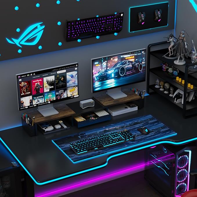 • 【Ample Storage Space】The dual monitor stand features two magnetic pen holders and a drawer, allowing you to easily organize your desk accessories and office supplies, keeping your workspace clear and tidy for easier access.