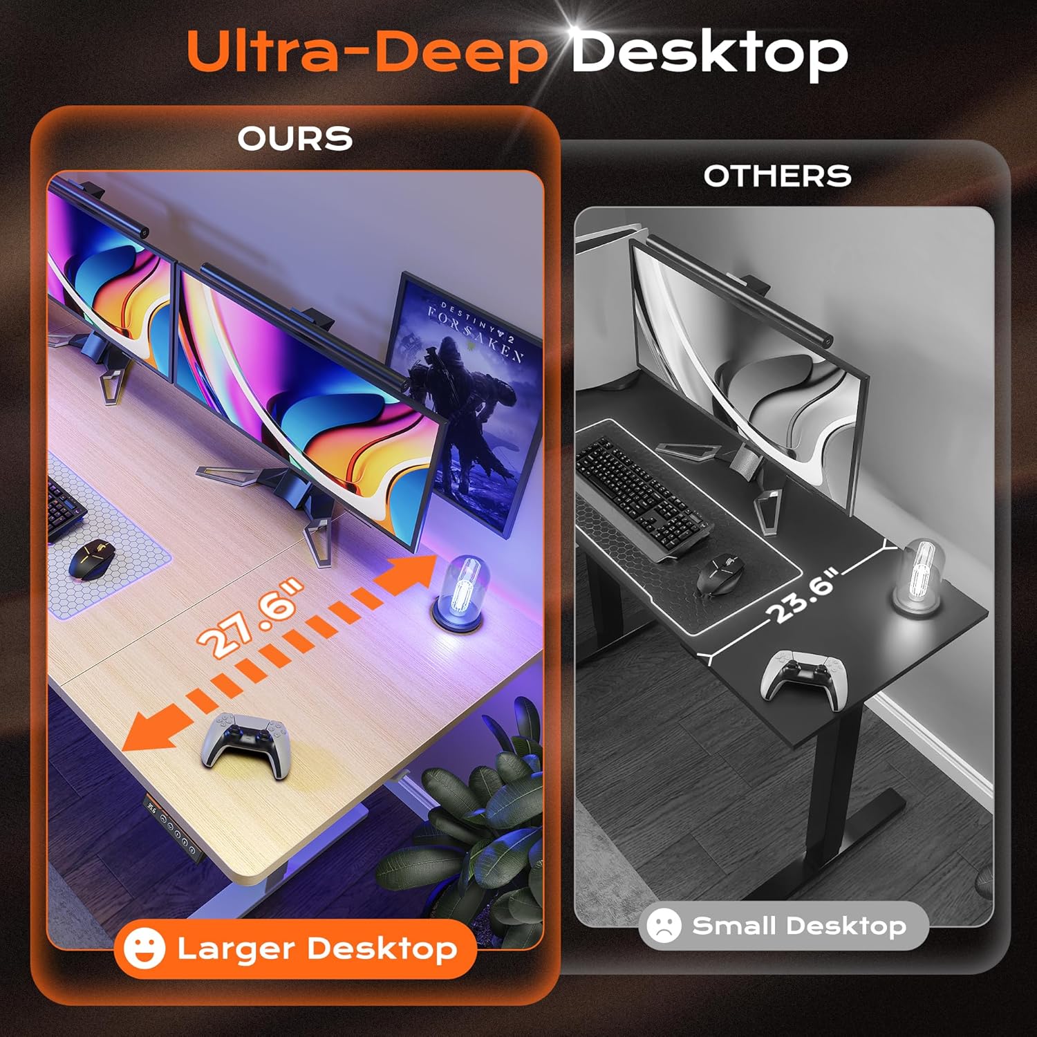 • 【Whisper-Quiet Operation】Powered by a robust yet quiet motor (operating at less than 45 DB), the wide deep desk brings smooth height adjustments without disturbing your household or office environment. This standup desk for home office is ideal for keeping focus and slient