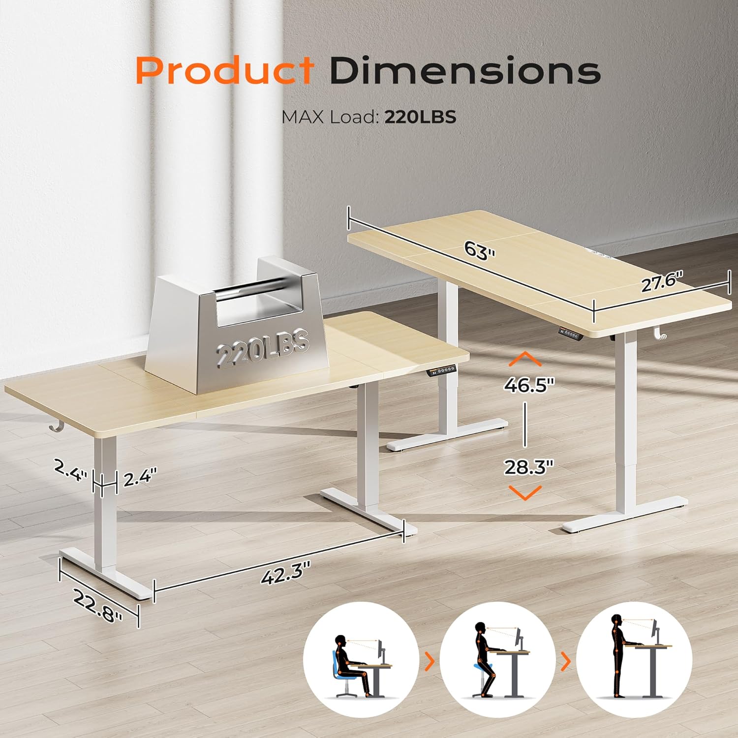 • 【Built to Last with Exceptional Stability】The industrial-grade steel frame and T-shaped design of the stand up desk support up to 220 lbs, ensuring stability and reliability for years to come. Paired with a durable motor, this home office desk is designed to meet the demands of your dynamic workday