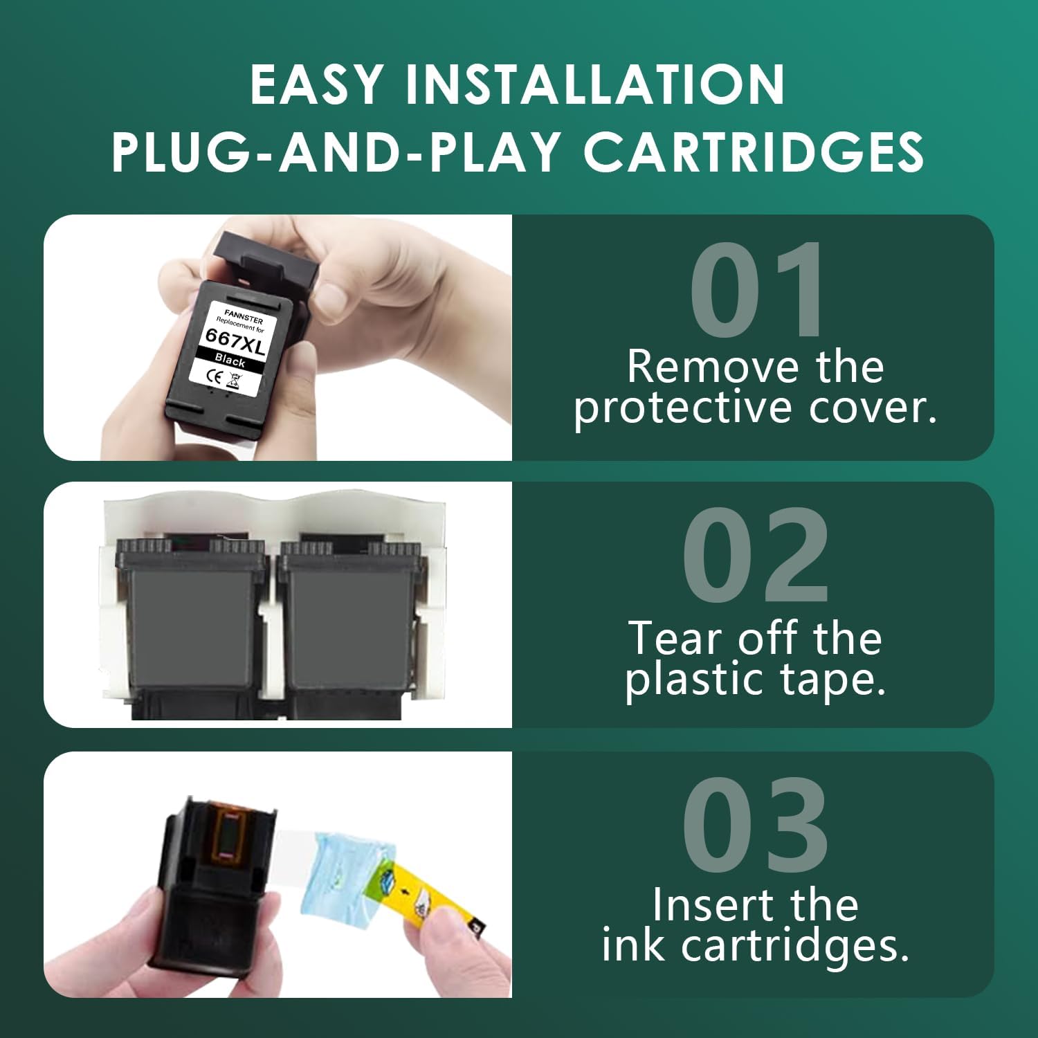 • Package Included: Compatible for HP 667 XL ink cartridges 2 black