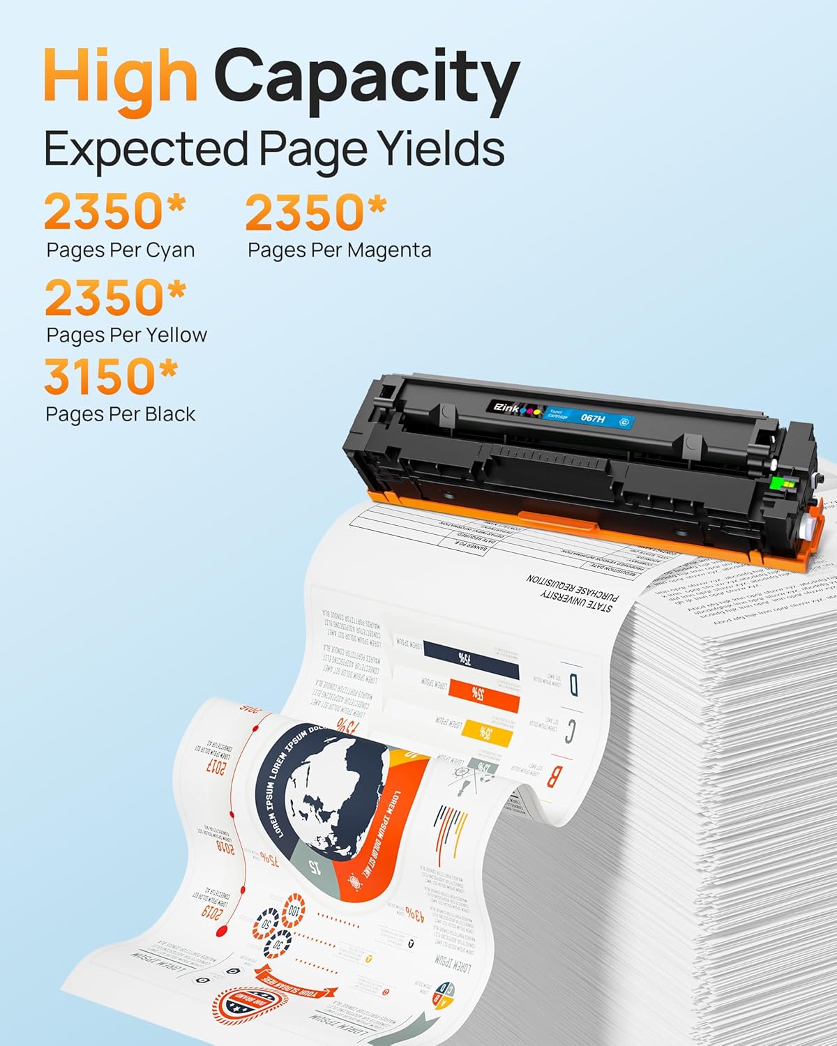 • High Page Yield: 3,150 pages per 067H black toner cartridge and 2,350 pages per 067H color C/M/Y toner cartridge (at 5% coverage of A4/letter paper)