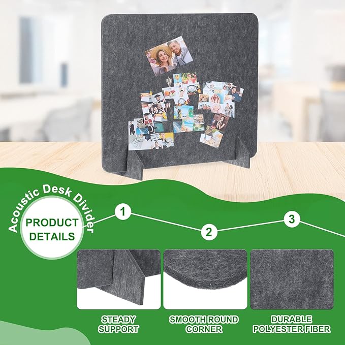 • Specification: Material: Polyester Fiber; Size: 600 x 600 mm/23.6 x 23.6 Inch(L*W); Thickness: 9mm/0.4 Inch; Color: Dark Grey; Packing List: 2 Sets x Desk Dividers(Each Set includes 1 Pcs x Divider and 2 Pcs x support feet)
