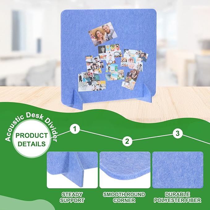 • Specification: Material: Polyester Fiber; Size: 600 x 600 mm/23.6 x 23.6 Inch(L*W); Thickness: 9mm/0.4 Inch; Color: Blue; Packing List: 2 Sets x Desk Dividers(Each Set includes 1 Pcs x Divider and 2 Pcs x support feet)