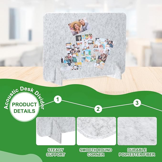 • Specification: Material: Polyester Fiber; Size: 600 x 400 mm/23.6 x 15.7 Inch(L*W); Thickness: 9mm/0.4 Inch; Color: Light Grey; Packing List: 2 Sets x Desk Dividers(Each Set includes 1 Pcs x Divider and 2 Pcs x support feet)