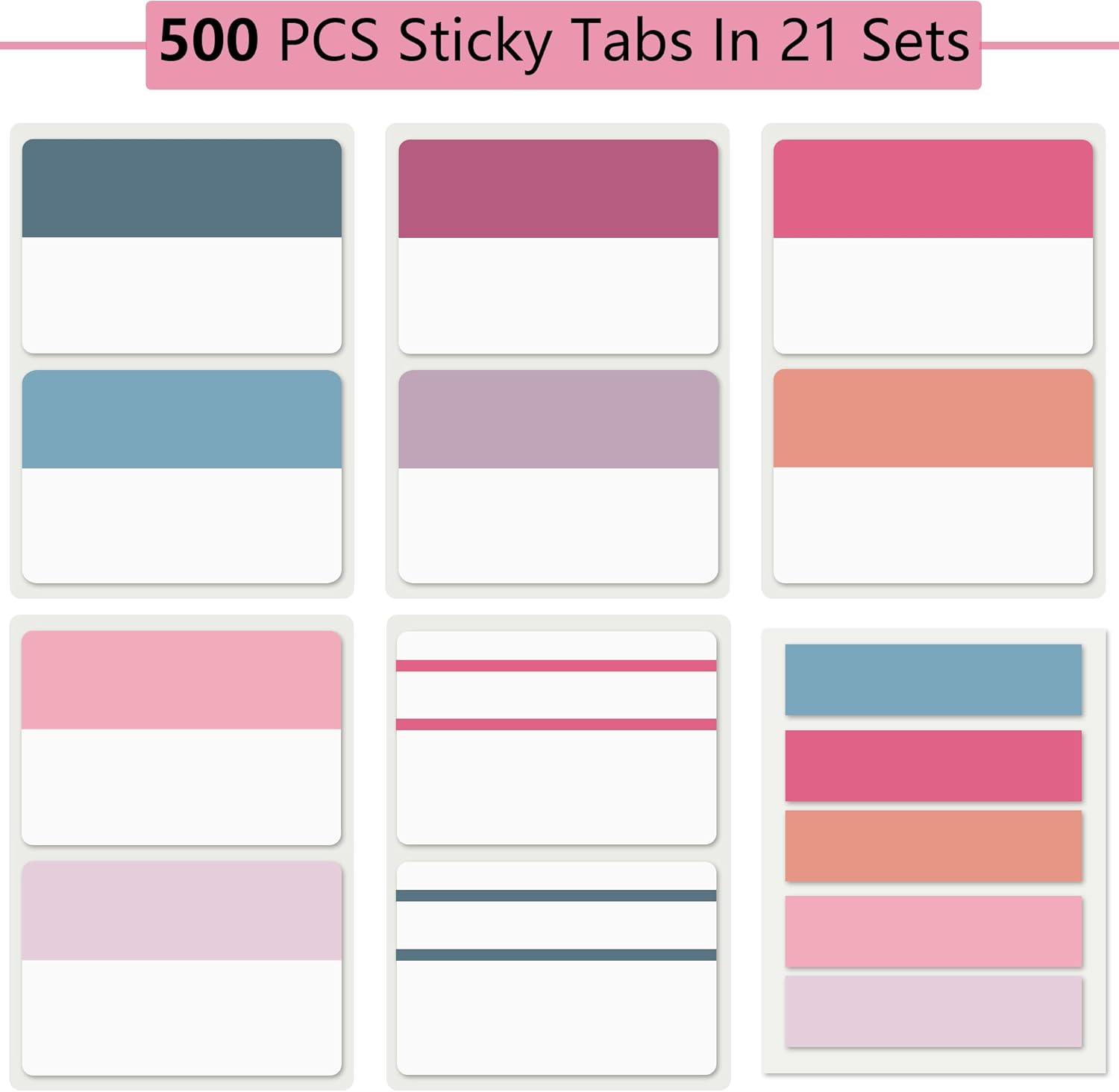 • Book Tabs: 500 pieces 21 sets in total, 400 pieces 2 inch sticky tabs in 20 sets with 10 different pastle colors,100 pieces 0.5 in tabs in 1sets, 20 pieces each color