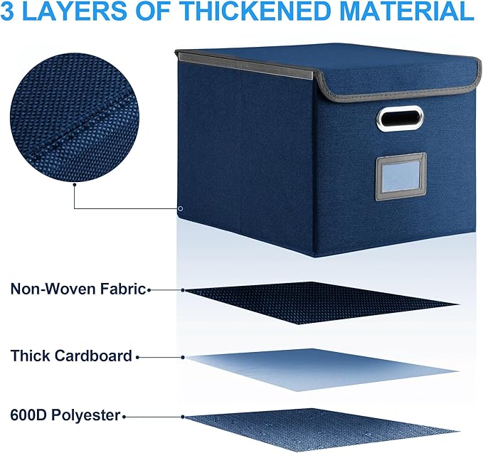 • 【Multi-Purpose Storage Solution】 Beyond files, use it to organize books, school supplies, toys, or seasonal items. The dustproof linen fabric and Velcro-secured lid keep contents clean, while the transparent label slot enables quick identification.