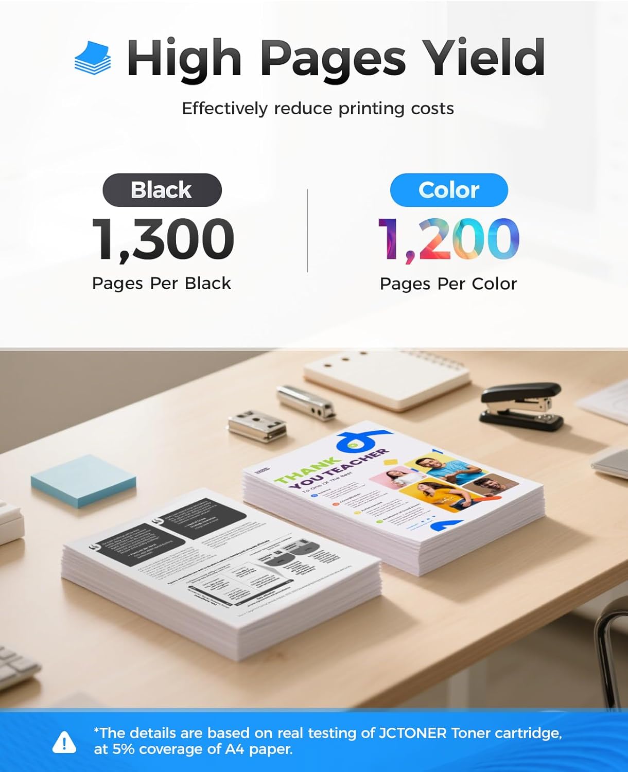 • The latest chip version: The JCTONER toner cartridges are equipped with the latest version of built-in chips, ensuring perfect compatibility between each toner cartridge and the printer. This enables you to print efficiently while maintaining stability and reliability, making installation convenient without the need for manual adjustments. All JCTONER toner cartridges have undergone strict quality testing and have obtained ISO9001 certification. High-quality toner cartridges can meet the demand for high printing volume. The fine toner ensures clear and stain-free printing results and extends the lifespan of the printer. You can purchase with confidence.