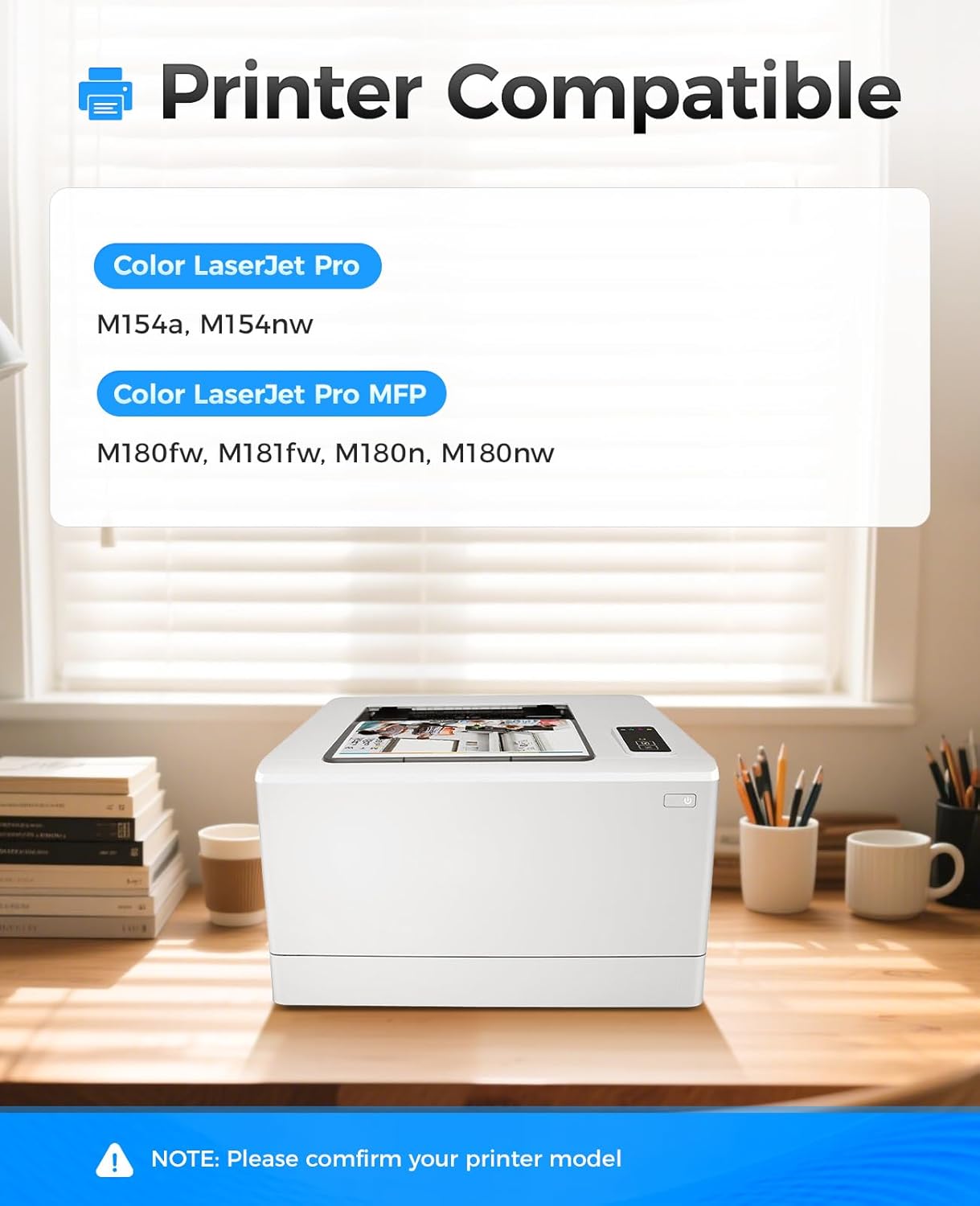 • Compatible Printers: Compatible with HP Color LaserJet Pro M154a M154nw Color LaserJet Pro MFP M180fw M181fw M180n M180nw Printers.