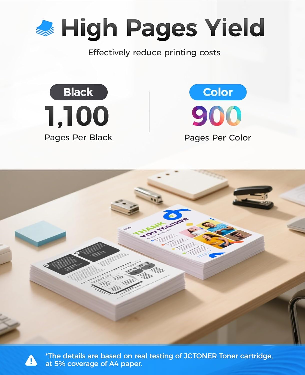 • The latest chip version: The JCTONER toner cartridges are equipped with the latest version of built-in chips, ensuring perfect compatibility between each toner cartridge and the printer. This enables you to print efficiently while maintaining stability and reliability, making installation convenient without the need for manual adjustments. All JCTONER toner cartridges have undergone strict quality testing and have obtained ISO9001 certification. High-quality toner cartridges can meet the demand for high printing volume. The fine toner ensures clear and stain-free printing results and extends the lifespan of the printer. You can purchase with confidence.