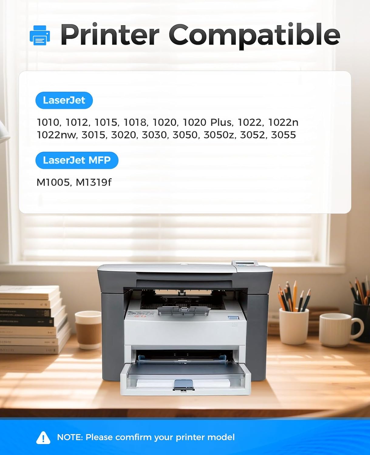 • Compatible Devices : Compatible with LaserJet 1010,1012,1015,1018,1020,1020 Plus,1022,1022n,1022nw,3015,3020,3030,3050,3050z,3052,3055 LaserJet MFP M1005,M1319f Series Printer. Compatible with LaserJet 1010,1012,1015,1018,1020,1020 Plus,1022,1022n,1022nw,3015,3020,3030,3050,3050z,3052,3055 LaserJet MFP M1005,M1319f Series Printer. See more