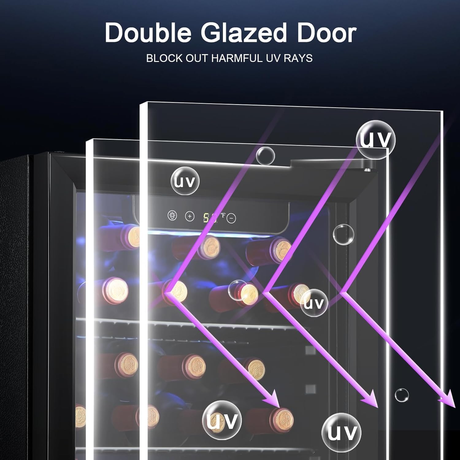• Tinted Double Pane Glass Door:Double-pane tempered glass door and air tight seal ensures maximum insulation. Transparent double-glazed door allows you to clearly see the amount of drinks in the cooler.