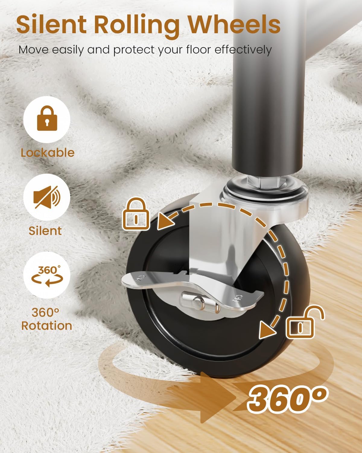 • ๐™Ž๐™ˆ๐™Š๐™Š๐™๐™ƒ, ๐™๐™Š๐™‡๐™‡๐™„๐™‰๐™‚ & ๐™‡๐™Š๐˜พ๐™†๐˜ผ๐˜ฝ๐™‡๐™€ ๐˜พ๐˜ผ๐™Ž๐™๐™€๐™๐™Ž: The casters of our coat rack have been carefully designed to move over a variety of floors such as hardwood, tile or carpet. Additionally, the 2 lockable wheels provide security, allowing you to keep your wardrobe rack securely in place when needed.