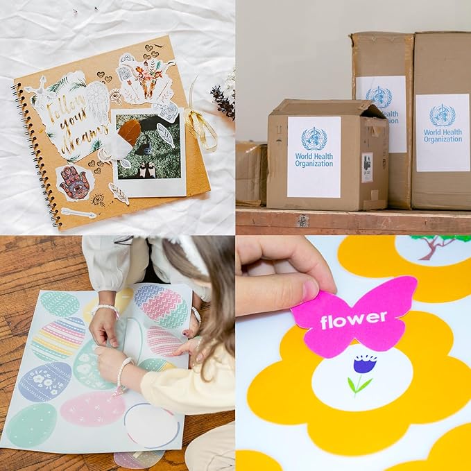 • ✅[ Crystal Clear Print ] High quality matte white sticker paper with great value, ensuring your creations are showcased in vibrant colors. Create long lasting authentic product labels, our sticker label paper is perfect for all your projects.
