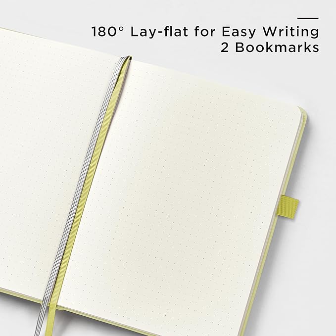 • 180° LAY-FLAT DESIGN: The lay-flat design allows for easy writing and ensures that you can utilize every page efficiently. Journaling, note-taking and planning has never been easier! 2 Bookmarks to help you find important content faster