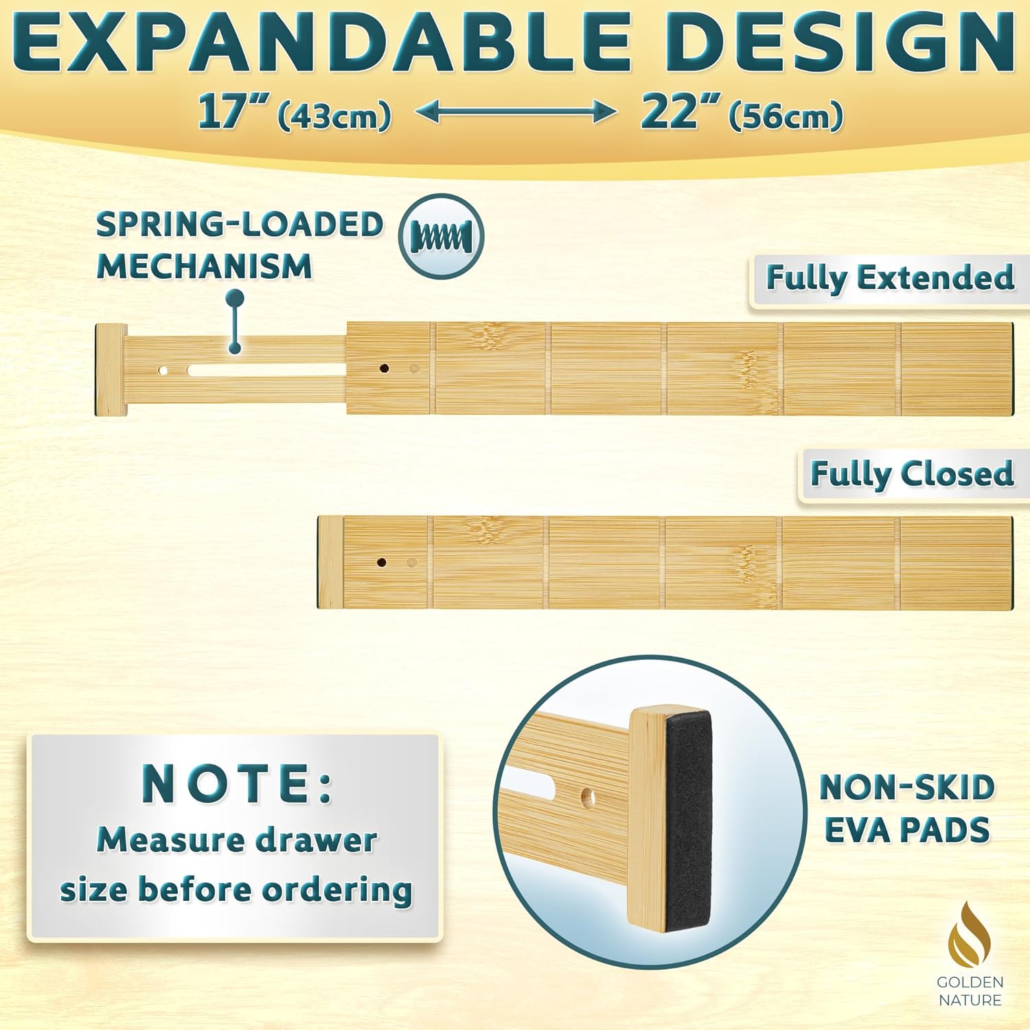 • PREMIUM-QUALITY BAMBOO - These heavy-duty separators are sturdy, durable, and resistant to wear and tear, ensuring long-lasting use; Plus, it has built-in EVA pads on both sides to prevent scratches and damage to drawers