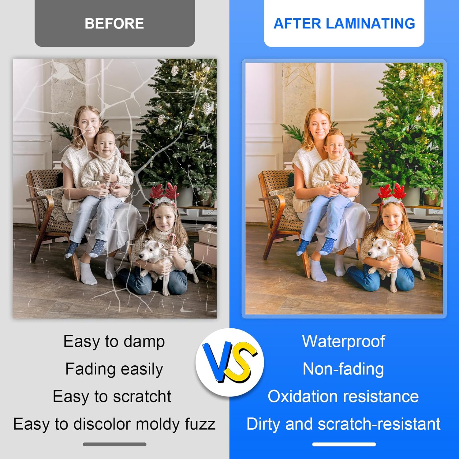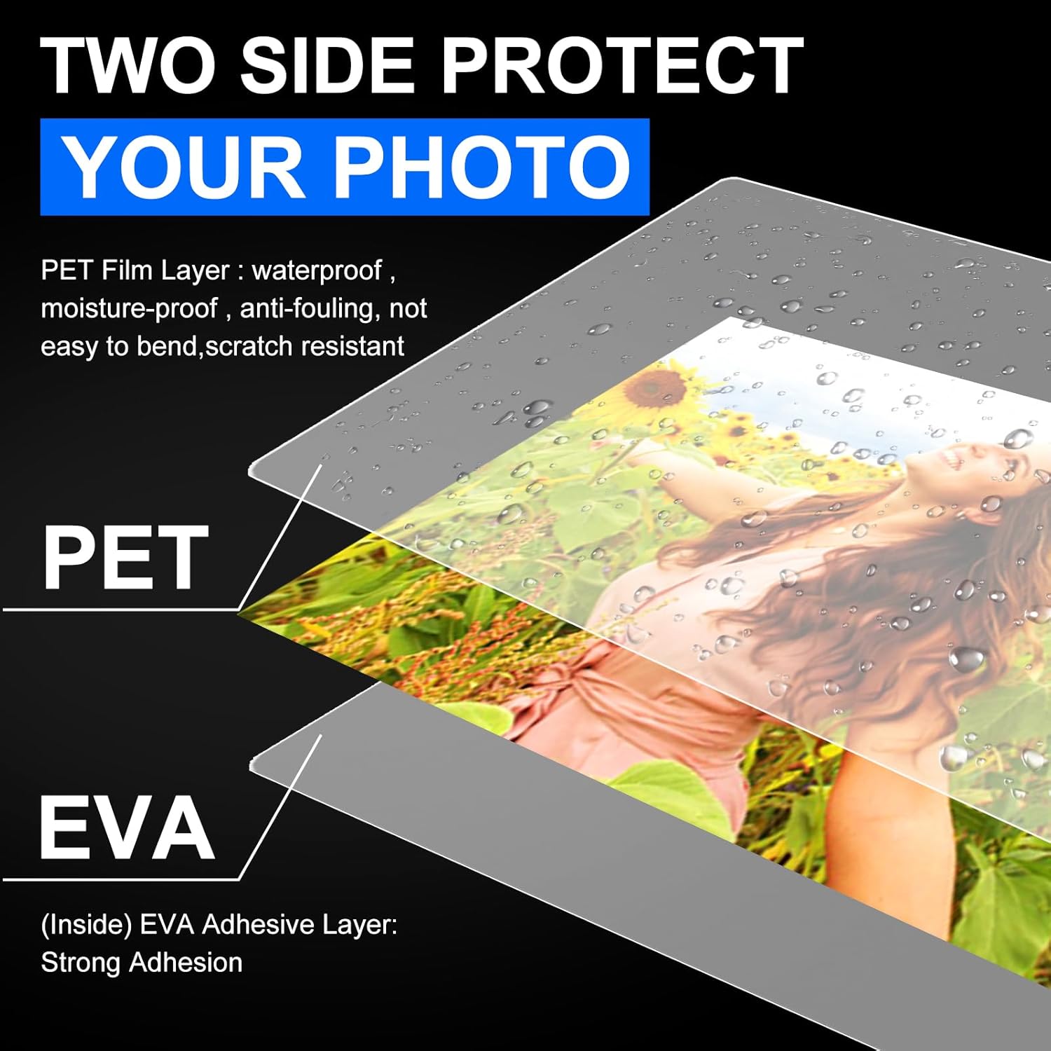 • CREASE PROOF: Thermal laminator needed, not self-adhesive. No bubbles, no shrinkage. The double layer does not come off easily, good plastic sealing performance.